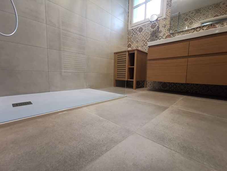 Pose d'un bac de douche extra-plat effet ardoise blanc